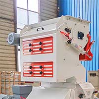 多组交叉叶轮组成,喂料均匀.RV铝壳变频调速电机控制喂料量,配置SKF轴承,双气缸式排料除铁,配备永磁除铁板,调节方便。该机采用直联传动,科学合理的锤片布置、锤筛间隙,成品细度均匀。粉碎室二次打击技术。选用进口高口质轴承,运转温升低。多种筛网规格可选,快启式开门机械和弹性压筛机构,换筛快捷,操作维修方便。SKF轴承,SKF轴承座,碳化钨合金喷焊锤片。