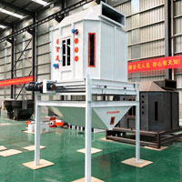 猫砂颗粒干燥,风机冷却,冷却后的猫砂进入料仓进行包装,通过自动真空打包机封袋后进入成品仓库暂存。